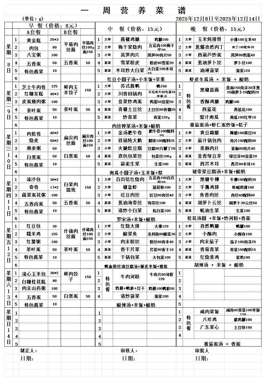 一周营养食谱