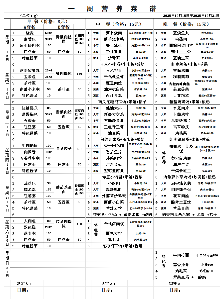 一周营养食谱