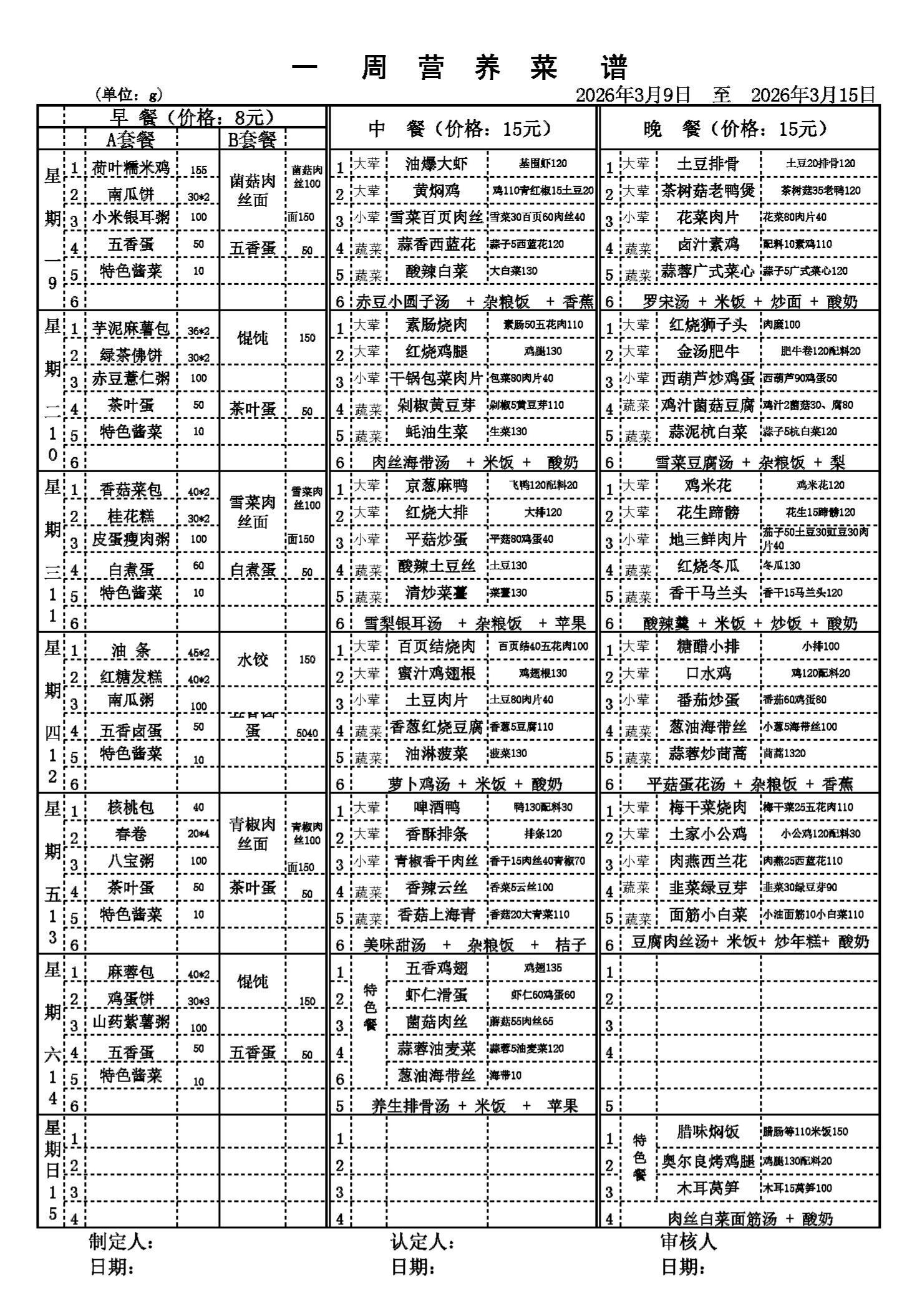 一周营养食谱